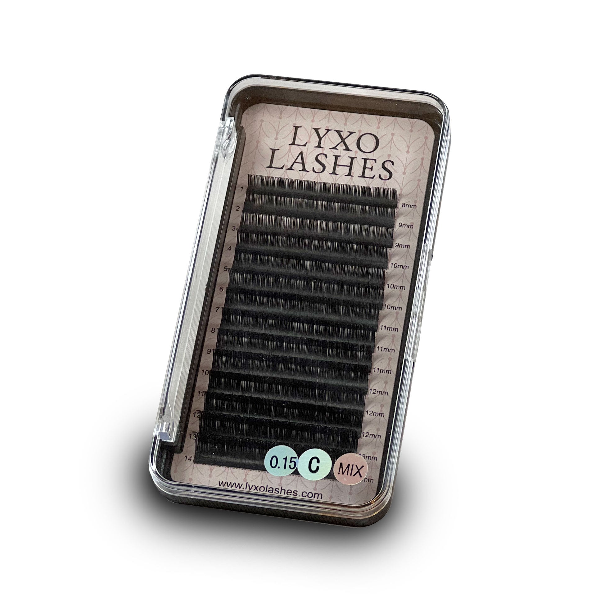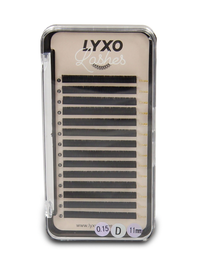 Individuella ögonfransförlängningar för klassiska enstaka ögonfransförlängningar (fransar). Fransarna är 0,15 mm breda och varje bricka har 14 rader.
