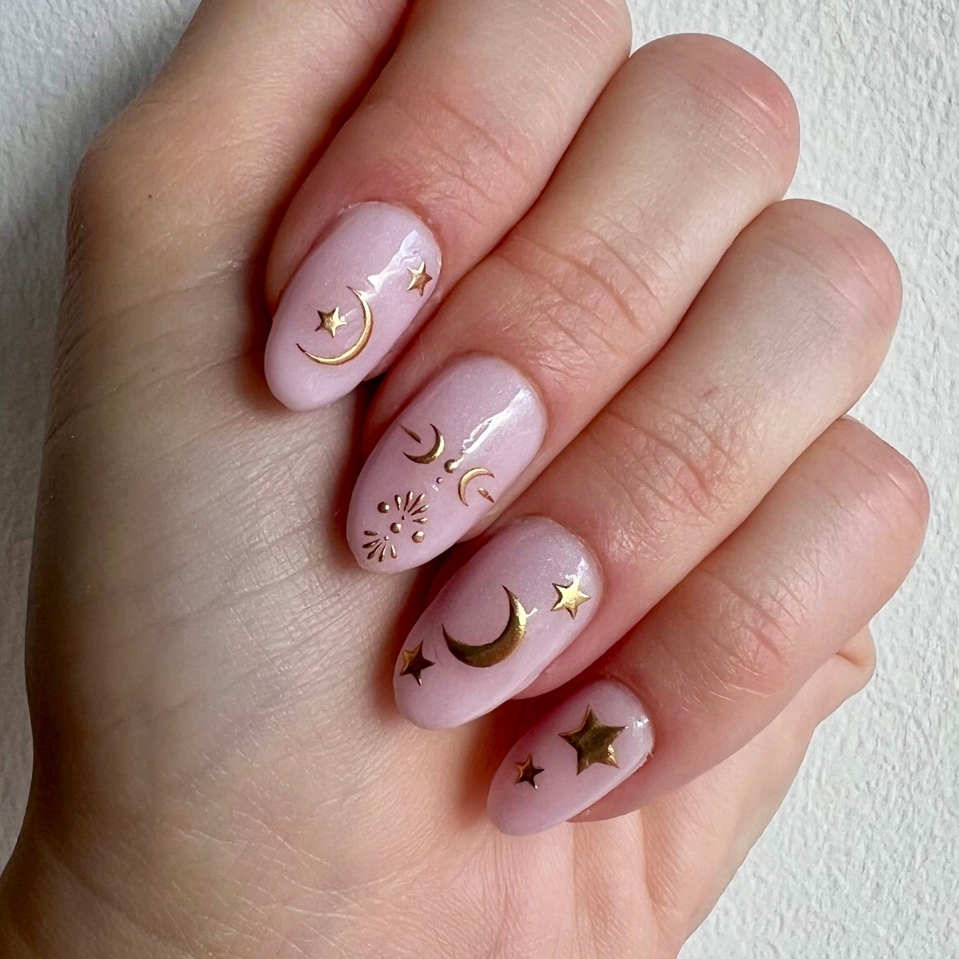 Guldfärgade Måne & Stjärnor Nagelklistermärken